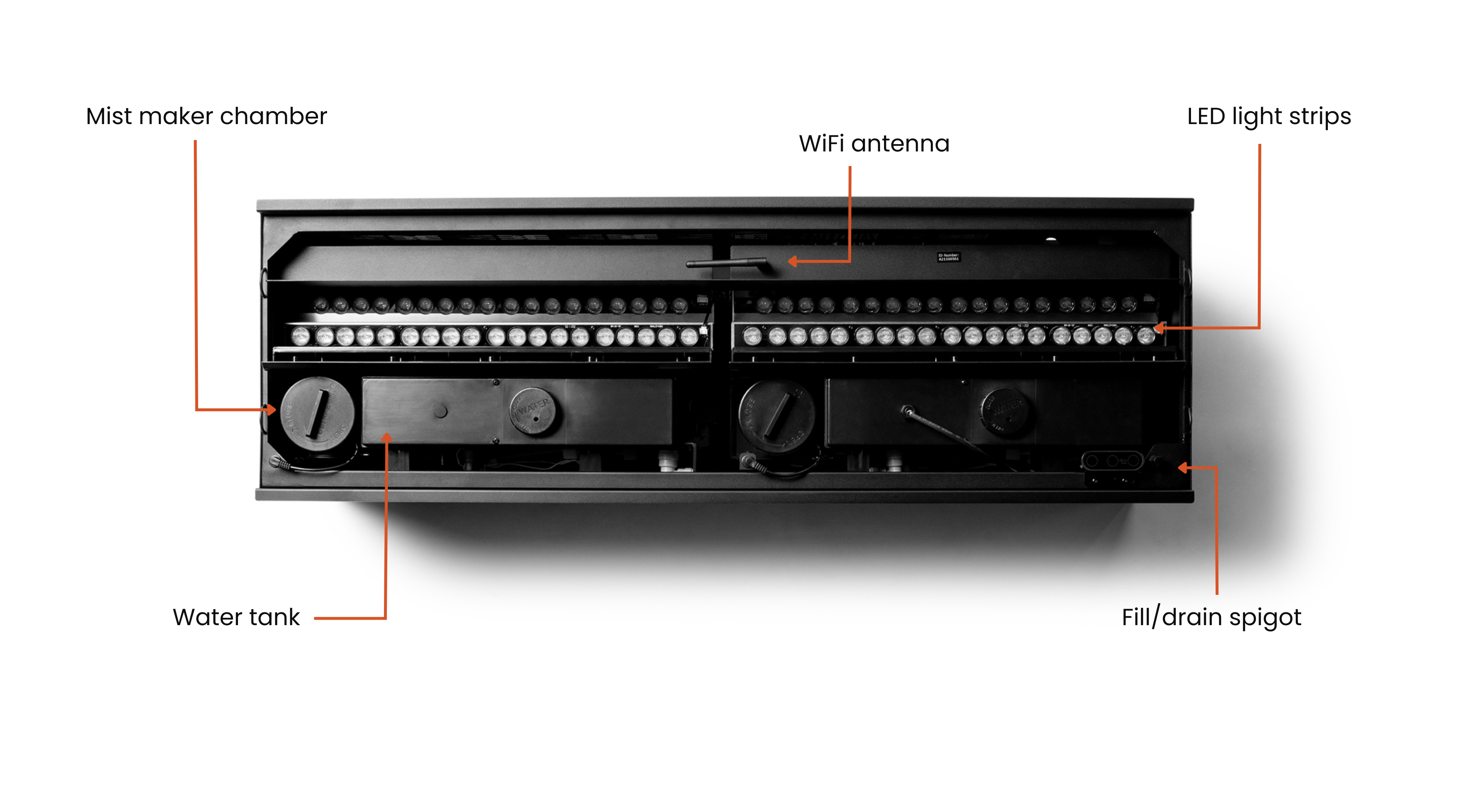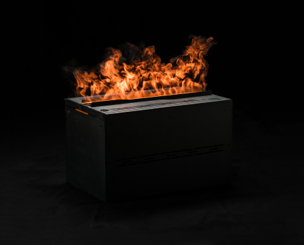 Aquafire® is type of electric fireplace powered by water that uses ultrasonic technology to create a fine mist that mimics the appearance of flames and smoke. These fireplaces do not produce actual flames, but instead, they create a realistic-looking flame effect using LED lights and water vapor.