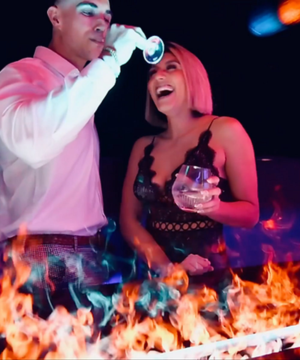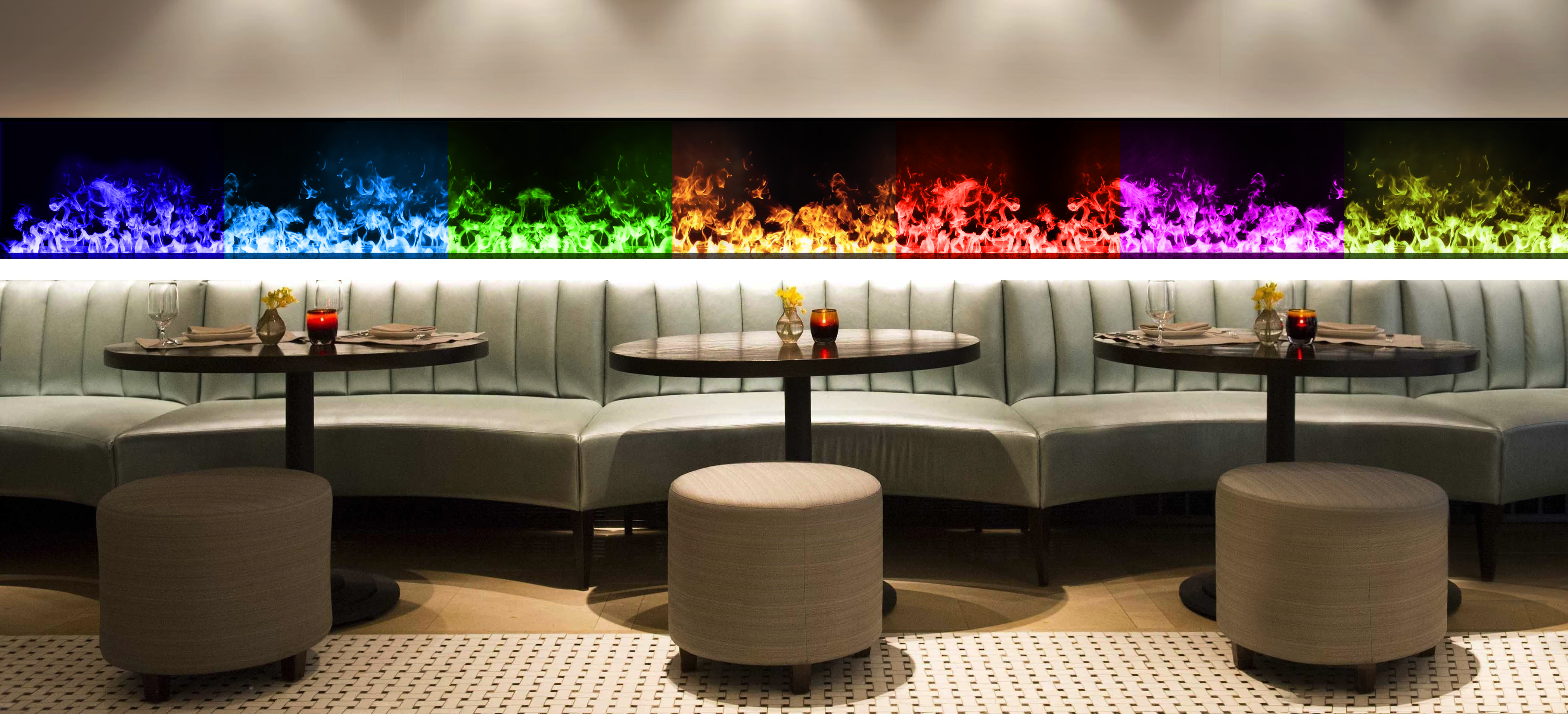 To create an even more dynamic experience for their customers, they decided to install 20 of our Aquafire water vapor inserts throughout their entire bar area including the actual bar top itself!