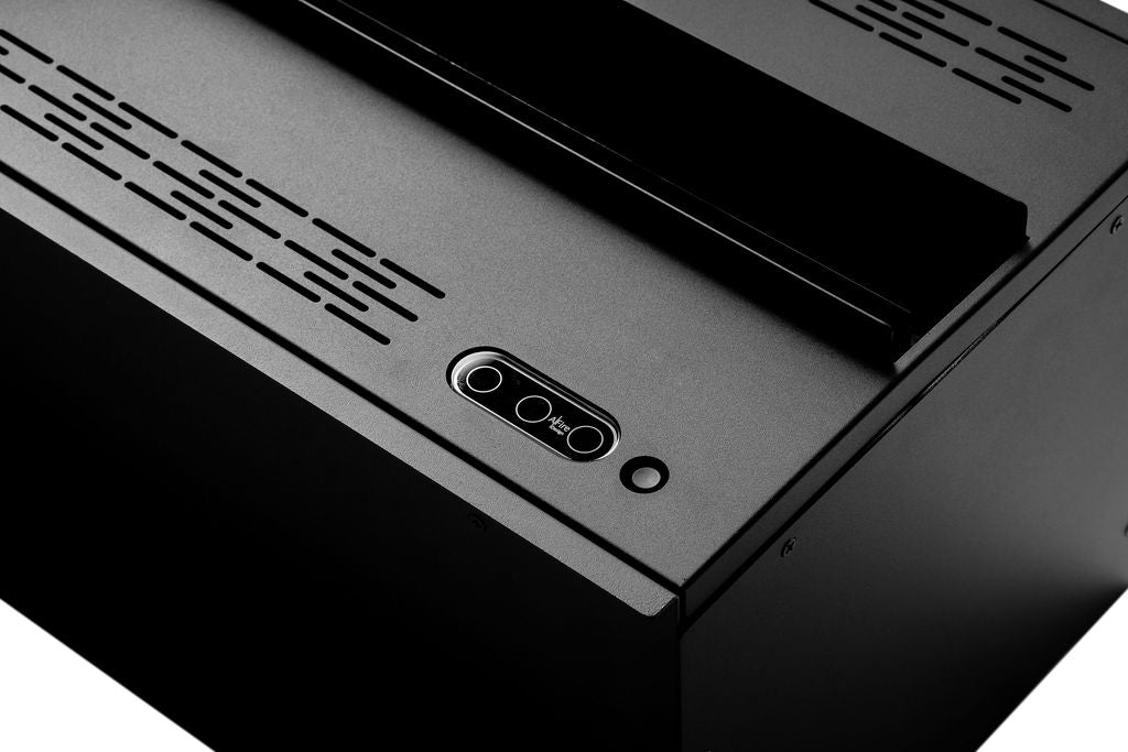 Water vapor mist is gently pushed with our fans from the mist chamber to the top of the unit through the diffuser vent. The vapor is then backlit by two bars of high powered color-changing LED light strips, creating our patented dancing water vapor flame effect.