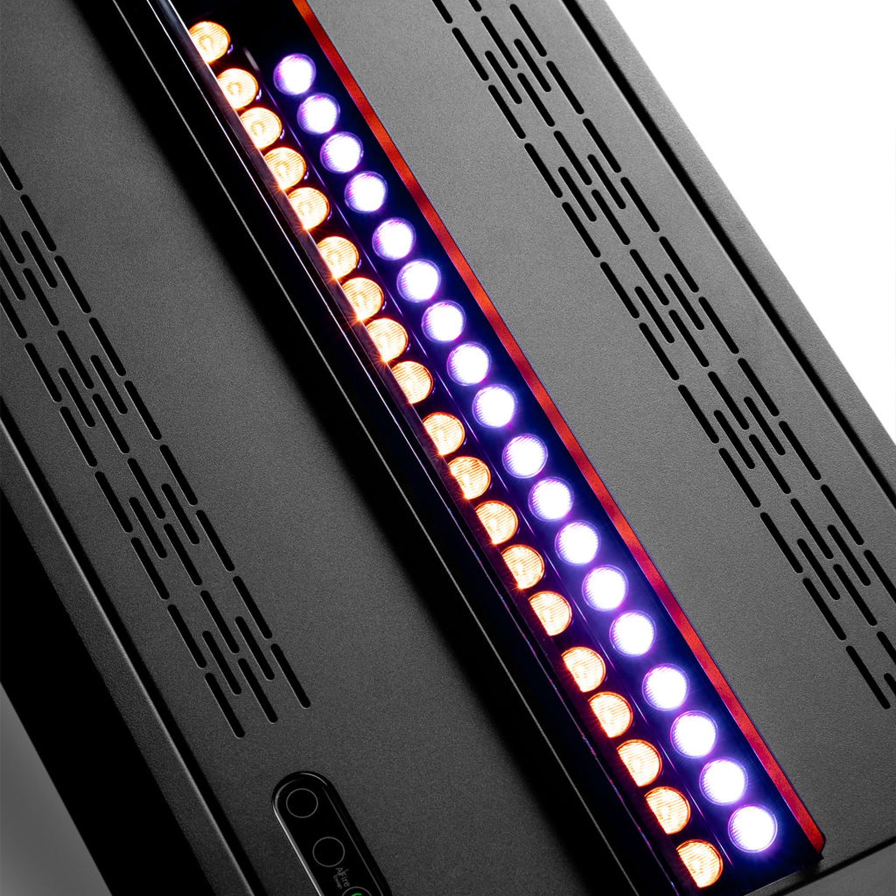 Water vapor mist is gently pushed with our fans from the mist chamber to the top of the unit through the diffuser vent. The vapor is then backlit by two bars of high powered color-changing LED light strips, creating our patented dancing water vapor flame effect.