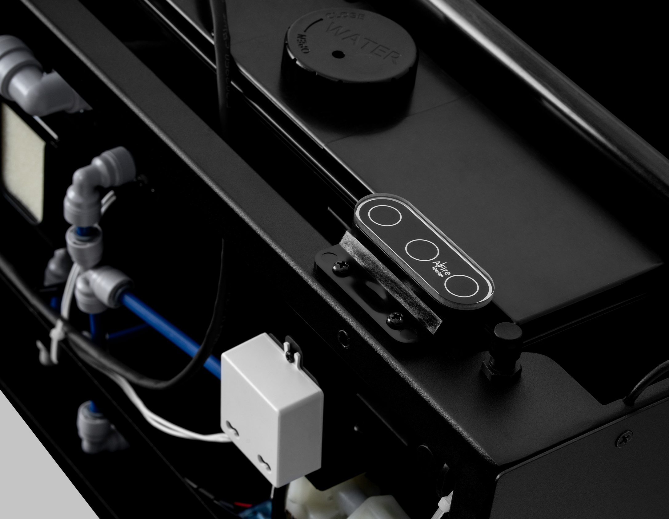 Simply add tap water 1 of 3 ways: Connect directly to a tap water source, enable the automatic filling function with the provided tubing or simply remove the top lid and add tap water manually! Please follow our hard water guide for best results.